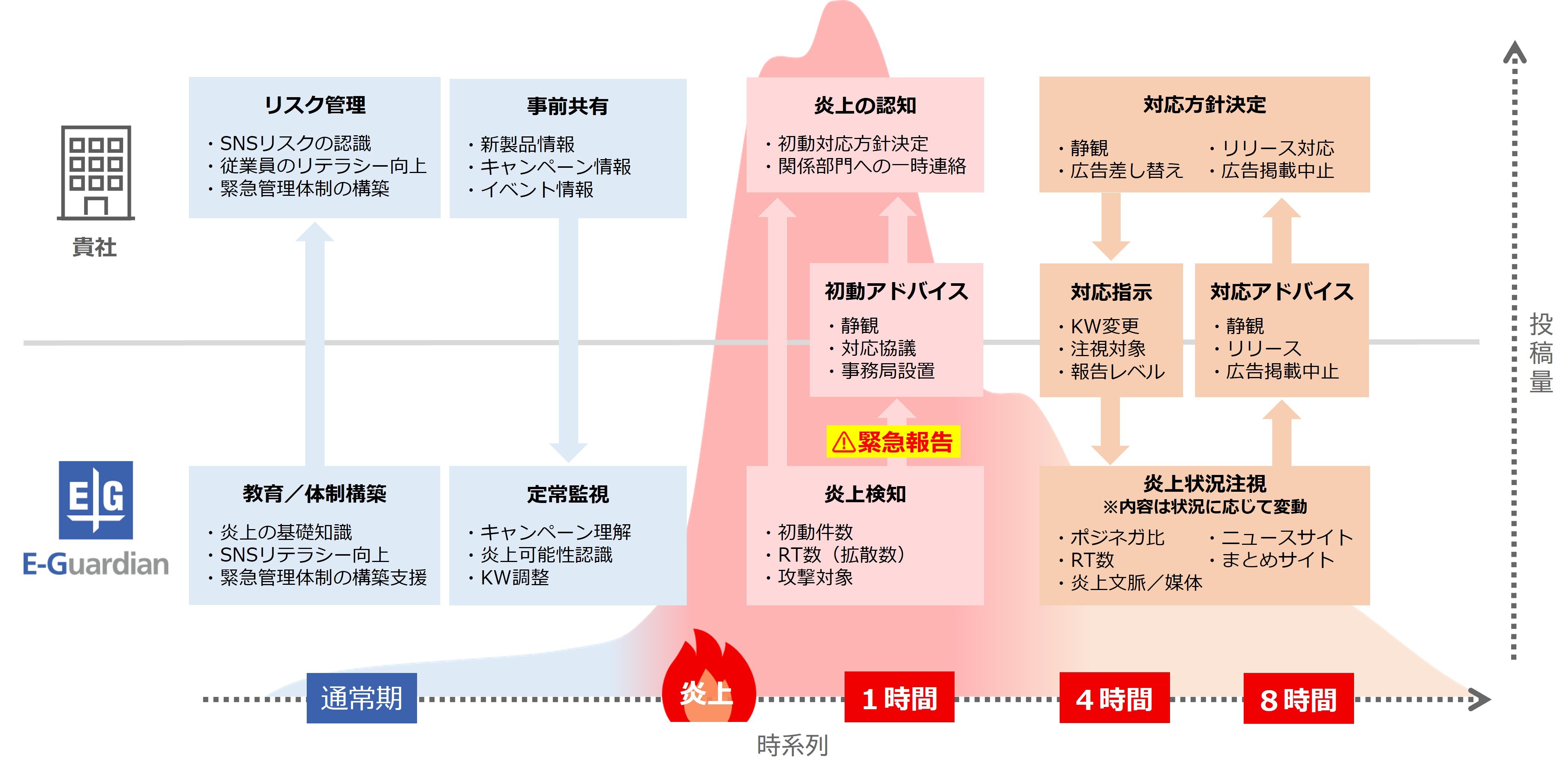 フェイク情報や不適切発言などの炎上リスクを検知し“10分以内”に報告